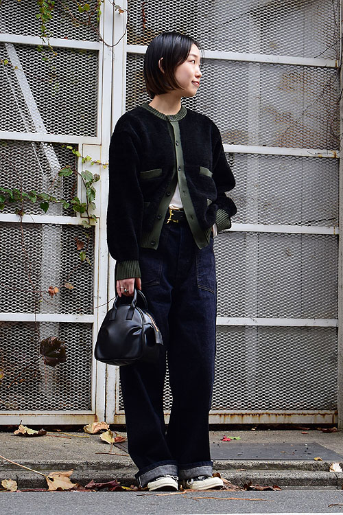 着丈も長すぎず、太いパンツやスカート、ワンピースなどに合わせて羽織っていただきやすいです。