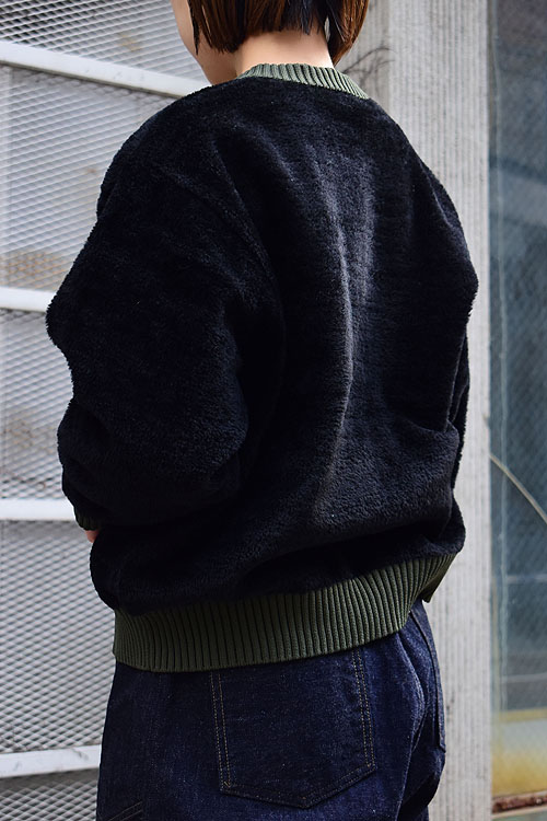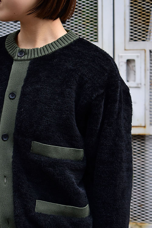 HAVERSACKの、ポリエステル100%のフェザーヤーンを使用した丸首カーディガン。
