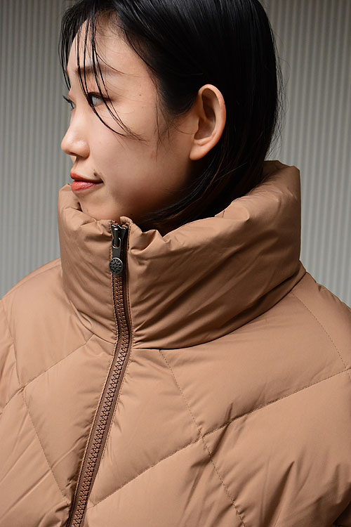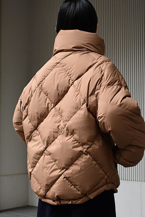 首元のボリューム感とドロップショルダー、ダイヤモンドキルトがポイントのモデル”ADEL (アデル)”。
