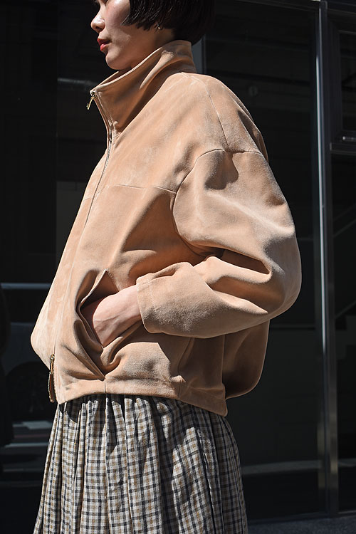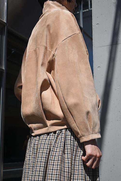 イタリア製の非常に滑らかなカーフスエードを使用しており、丸みのあるオーバーサイズなシルエットが特徴的な一着。
