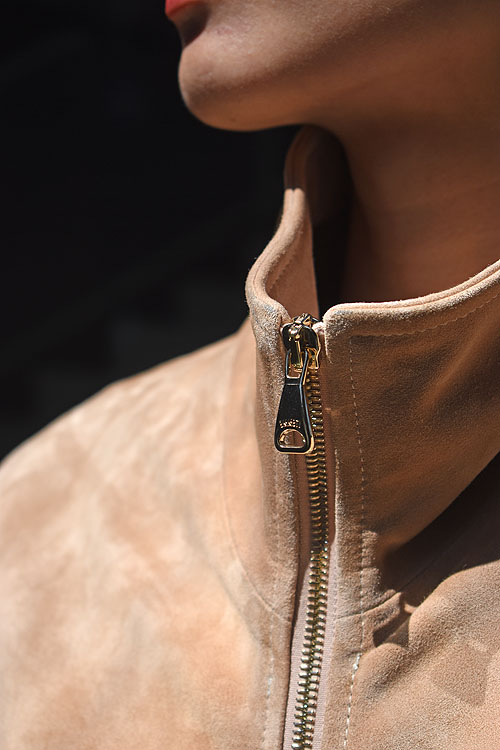 フーディー型に続き、こちらはショート丈のスタンドカラーブルゾン型。