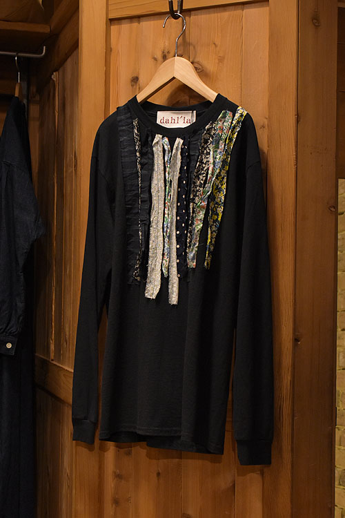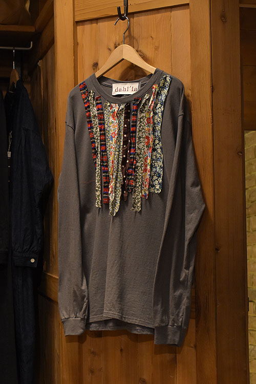 リメイクものは雰囲気もあり一枚でも素敵なのですが、フロントの目を惹くデザインはアウターを重ねてもスタイリングに華を持たせてくれますね。