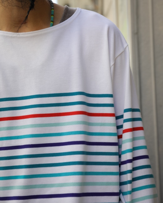 カジュアルなアイテムながら、カラフルなボーダーカラーと相反するシーアイランドコットンのシルクのような光沢感が絶妙です。