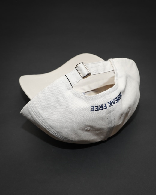 フロントにブランドアイコン、バックにはBREAK FREEの刺繍が施されたシンプルな6パネルキャップ。