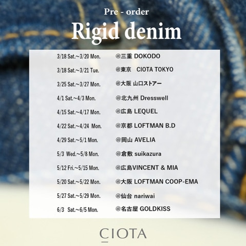 期間中、当店では普段ご覧いただけないリジットデニムのサンプル(29~35インチ)をご用意させていただきます。