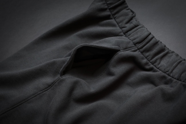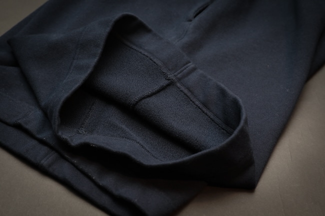 ウエストはドローコード付き。やや幅感をもたせた、膝上丈のシルエットは汎用性大。程よく厚みもあり、裏毛仕様。
