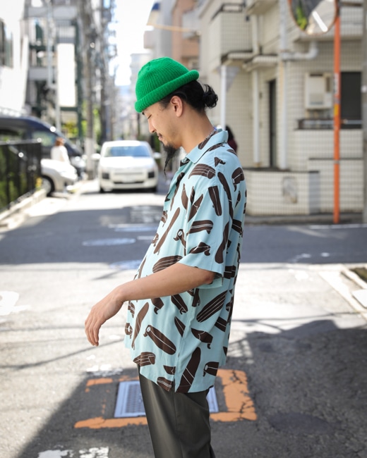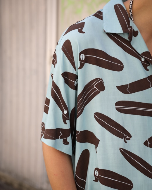 勝山八千代さんが描かれたブランドらしいヴィンテージのシングルフィンモチーフ。