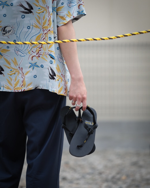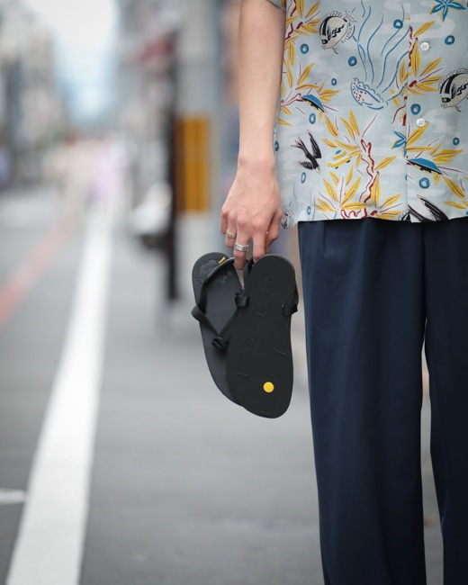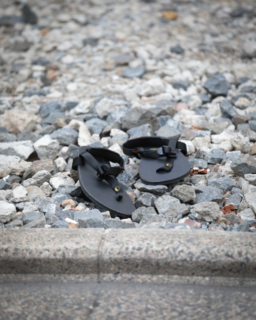 アウトソールに、ストラップのみのシンプルな構造は“ほぼ素足”であり、フィット感も◎。