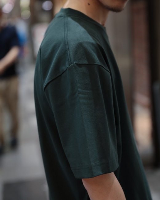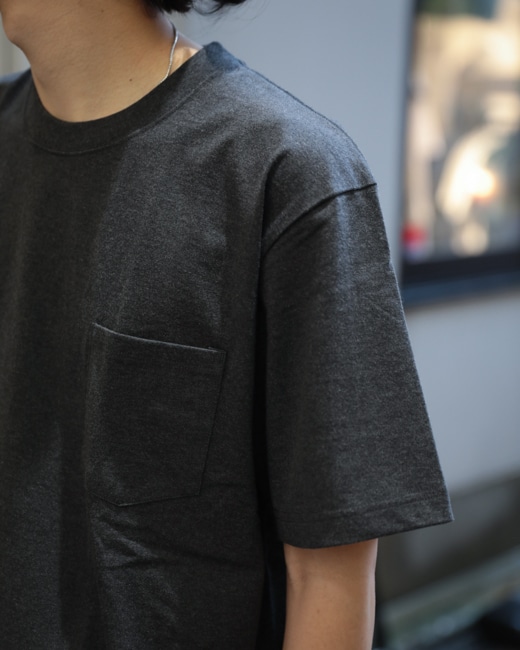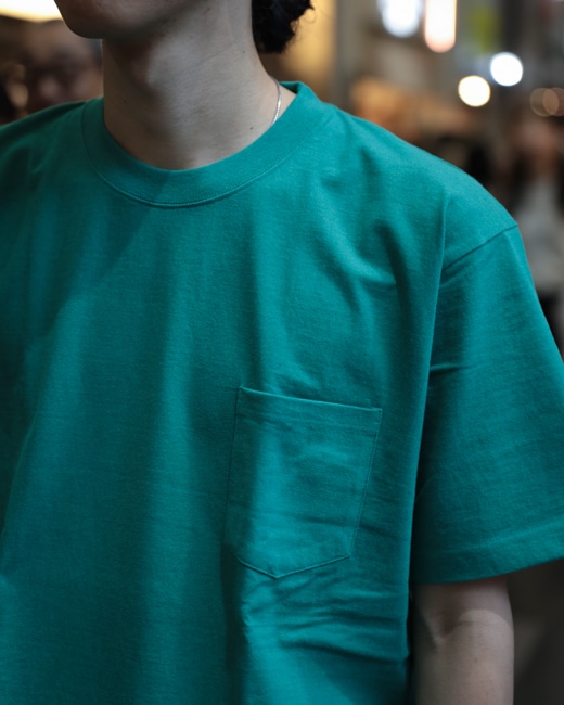 ヘビーウェイト(肉厚)のコットン100%生地を使用し、洗えば洗うほど肌に馴染み、洗いこんでも首周りが伸びにくく型くずれしにくい強さと耐久性が特長です。