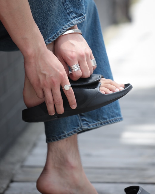 素足でも靴下でも着用する際のサイズ調整が可能です。