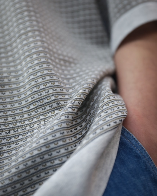 非常に細やかなジャガードが特徴の一着はどこか懐かしく、嬉しいデザイン。