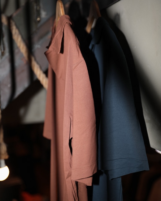 ふわりとしたアウトライン、カラッとした速乾性の高い素材感が特徴です。
