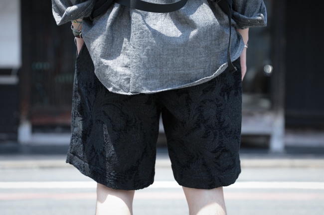 3,4シーズンに一度不意にリリースされる奇想天外なブランドらしい織物ショーツ。