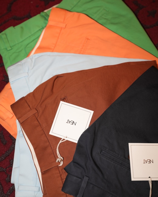 先日のブラック、ベージュに引き続きまして、待ち望んでいた“NEAT Chino”の他5色。