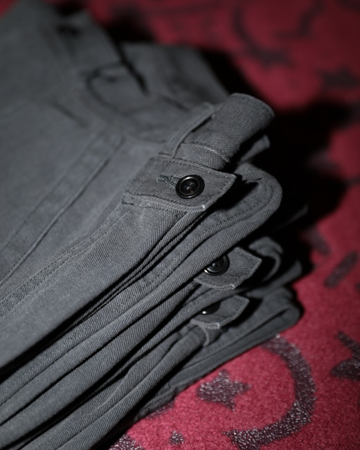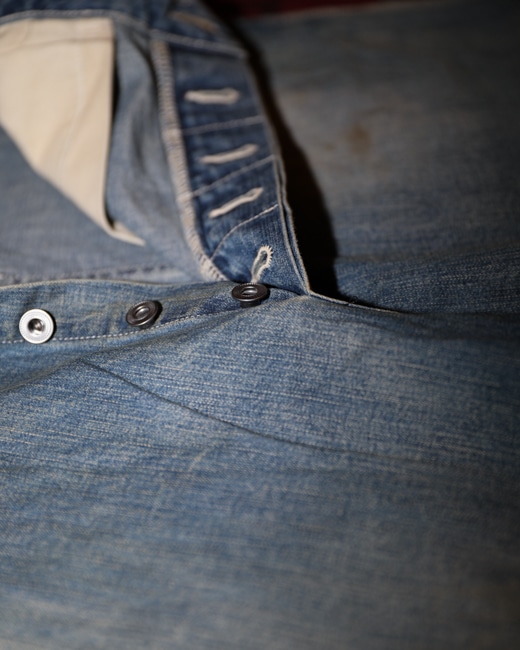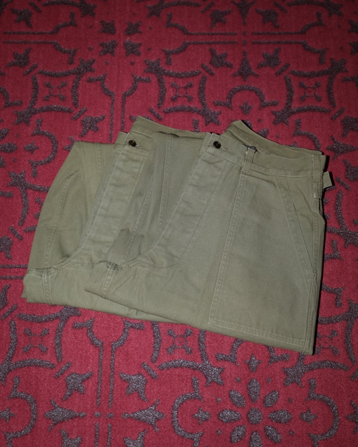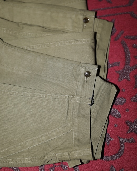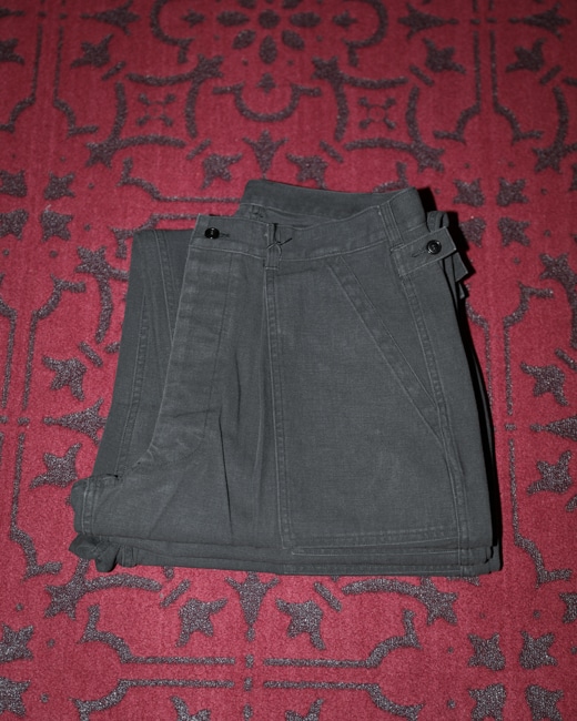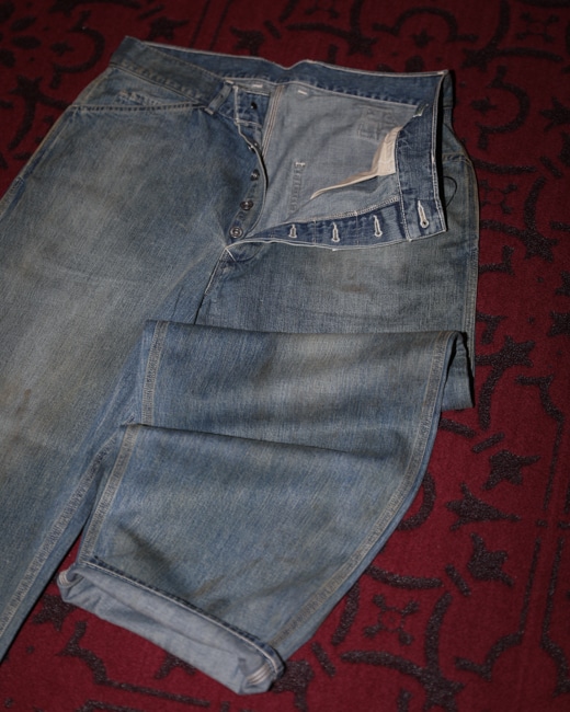 model = Vintage Military Denim Trousers