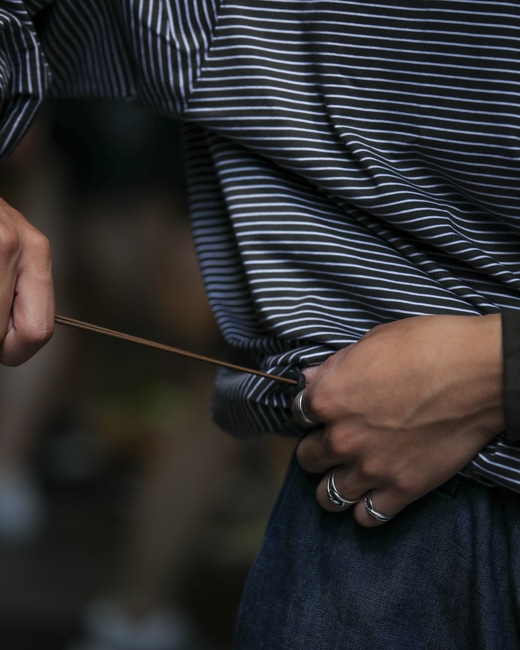 ふわりとした生地、風船のようにゆとりのあるドレープは裾元のドローコードにて変幻自在。