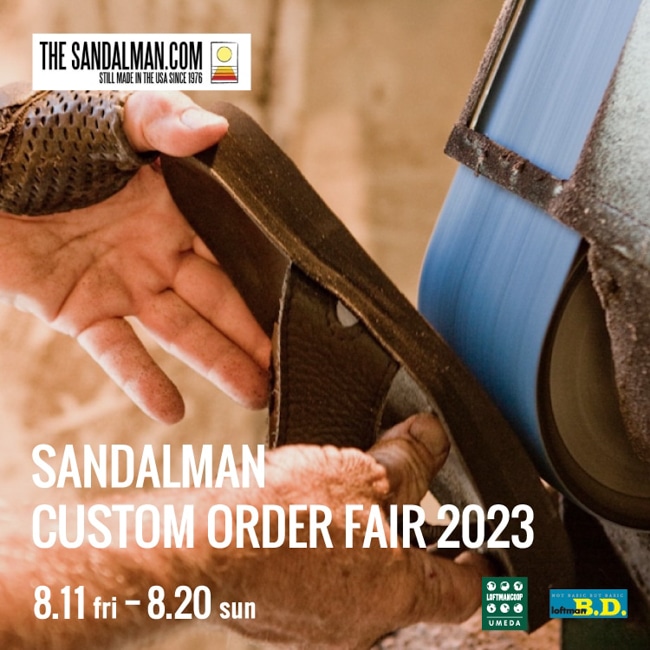 SANDALMAN(サンダルマン)のオーダー会を大阪・LOFTMANCOOP梅田及び、京都・LOFTMAN B.D.にて8月11日より2店舗同時開催させて頂きます。
