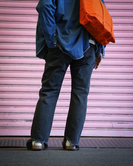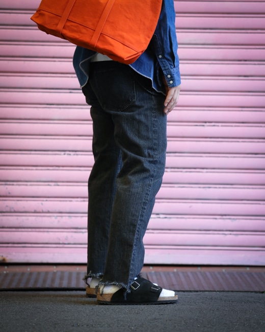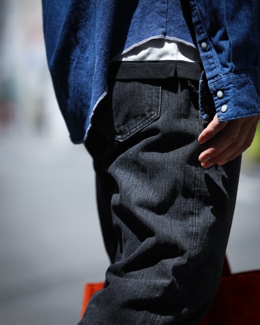 セルビッジとなるデニム生地はタテヨコ異なるブラックで織り上げたNEW BLKは奥行きがある表情になっております。