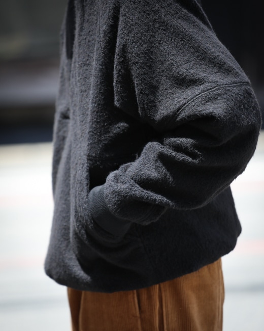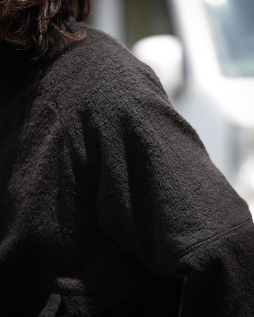 カジュアルな印象になりがちなボアアイテムですが、各シームにしっかりとした芯を貼り、ダブルステッチでエッジを効かせた山内らしい縫製で、全くだらしない印象はありません。