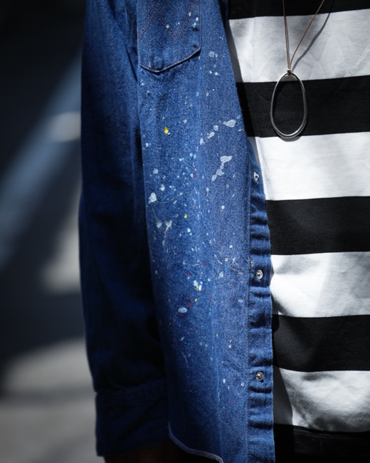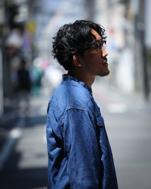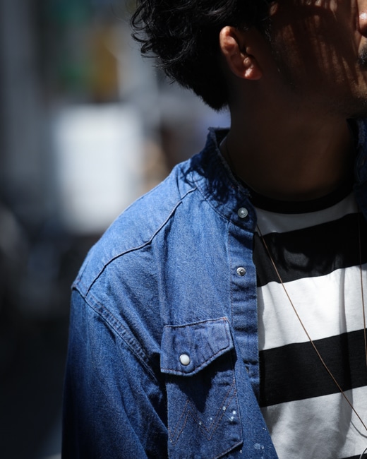 王道のデニムウエスタンを新たな解釈のもとにノーカラー仕様へ。