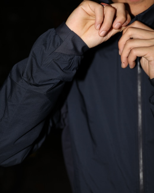 軽量で汎用性が高く、合成素材の断熱性能のあるフーディは、ミッドレイヤーおよび1枚でも着用可能。