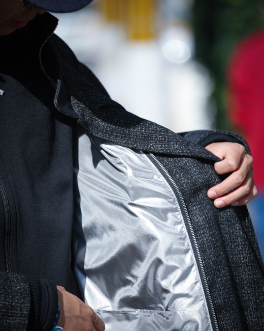 裏地には蓄熱効果のある高機能素材を使用した一着。