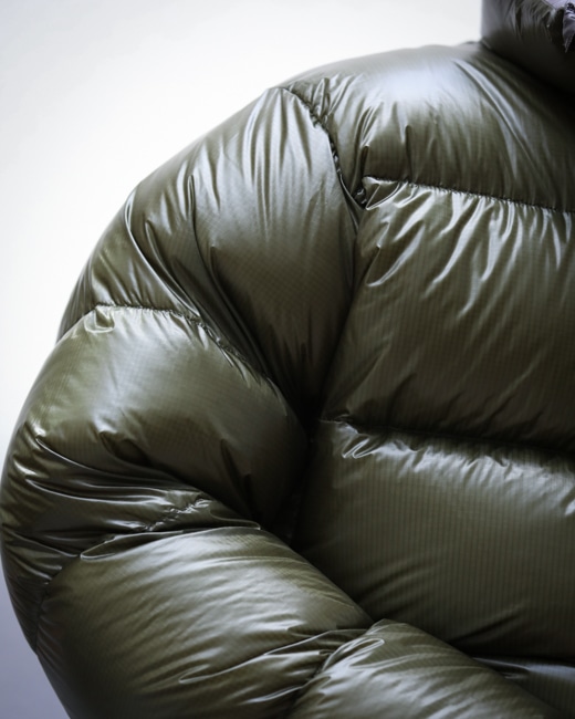 表地に"Air-light rip"を使用し、厳冬期用の寝袋のようにタップリとダウンを入れ、ハイロフトに仕上げた"Nap-pull(ナップル)"。