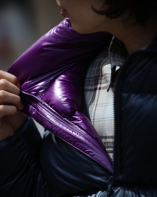 超軽量な表地を採用し、シンプルなディテールにすることで、非常に高い保温力を持ちながら、Mサイズで375gに仕上がっています。