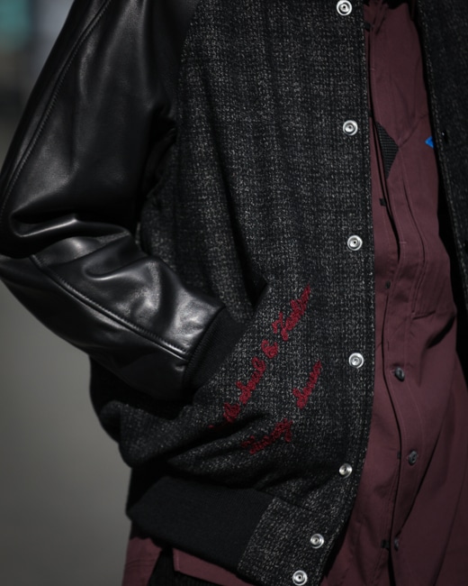 縮絨が施されたブラックを基調としたツイード素材がメインボディに採用され、