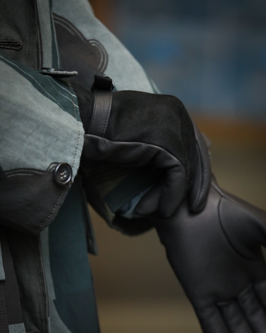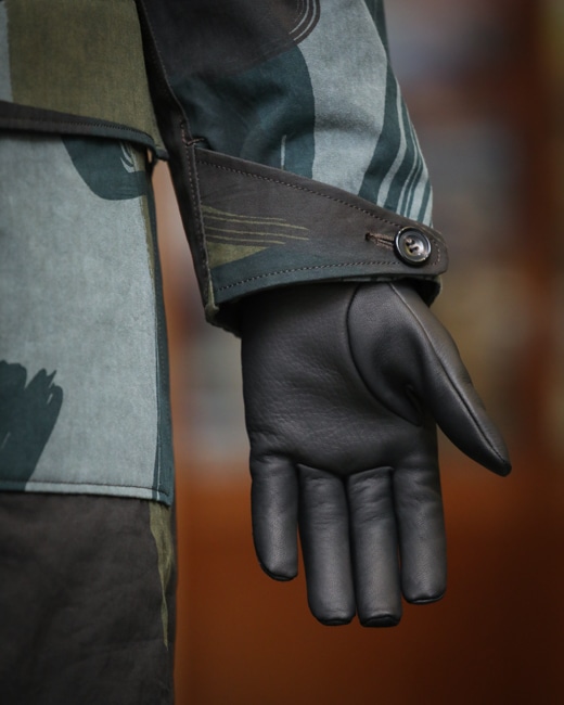 ミリタリーの軽作業用レザーグローブをモチーフに、タウンユースに適した手触りのいいグローブ。