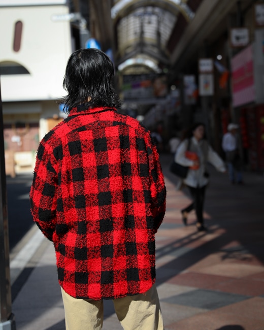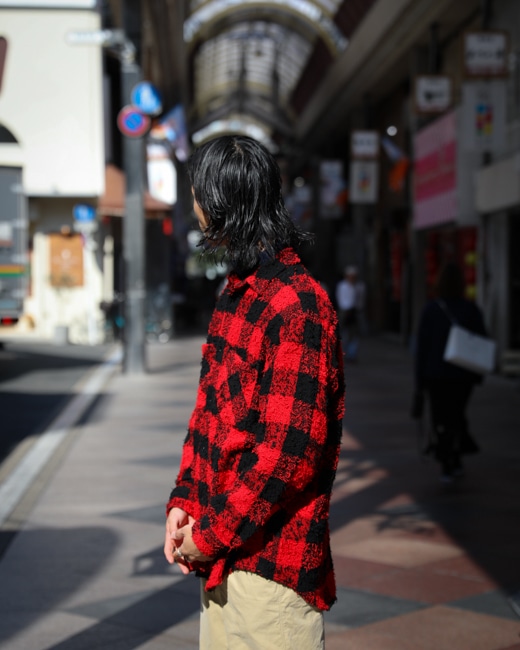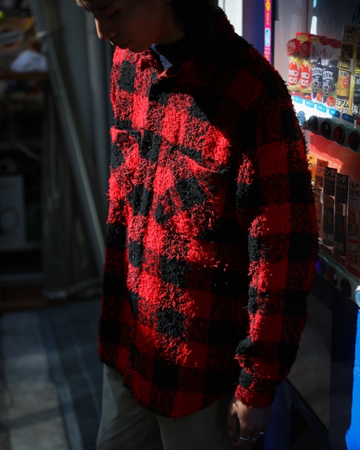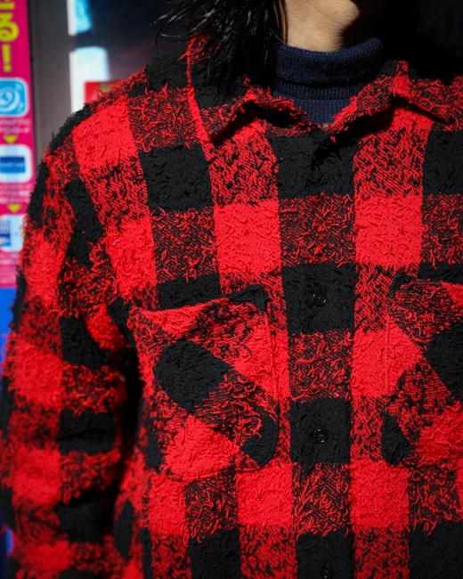 ニードル加工で引っ掻き出した、 意匠的な毛並みが特徴的なレギュラーカラーシャツ。