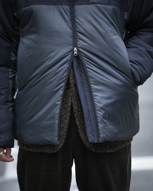 ダウンなど動物性の素材を一切使用することなく、合成断熱材を中綿として採用することは、その機能的なメリットに加え、アニマルウェルフェアの観点からも、人間の快適さのために鳥が苦しむべきではないというHoudiniの信念によるものであります。