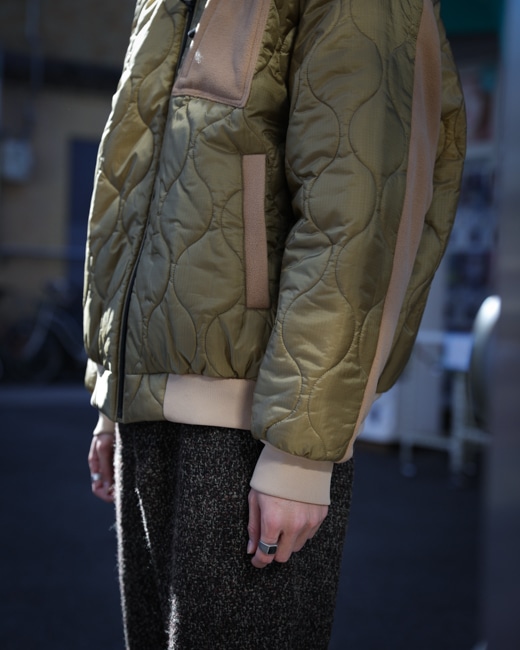 当店では写真のS.F.C QUILTED PUFF JACKETブラック、カーキ、そしてWIDE FLEECE PANTSをセレクト。