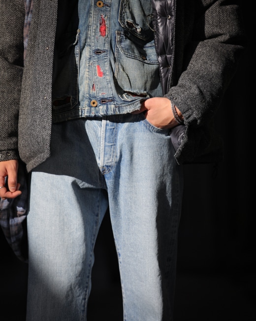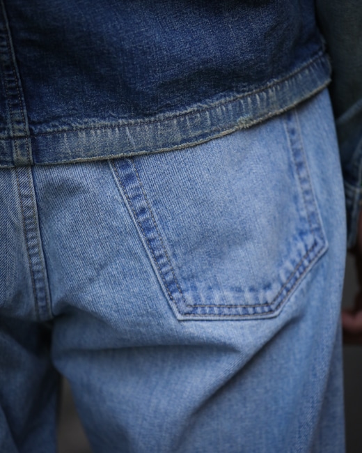 13ozの肉感を残しながら古着の色味を表現された一本です。