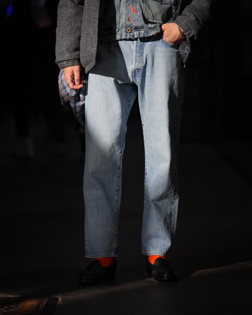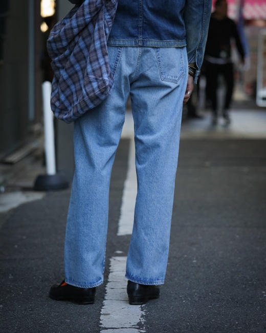 ヴィンテージを元に、やや股上を深くし、尻グリのくい込みを解消して穿き易く、非常に綺麗にテーパードが効いたシルエット。