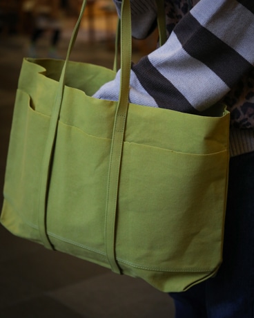毎シーズン、ご好評いただいておりますAMIACALVAのWASHED CANVAS 6POCKETS TOTE(L)。