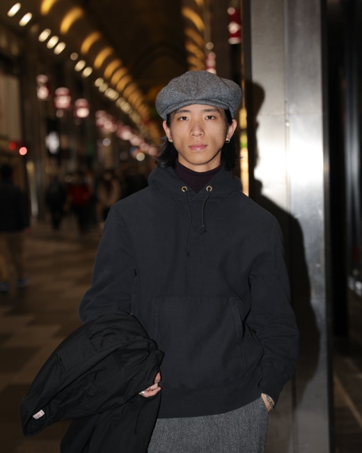 ヴィンテージのリバースウィーブパーカーをベースにデザイン。