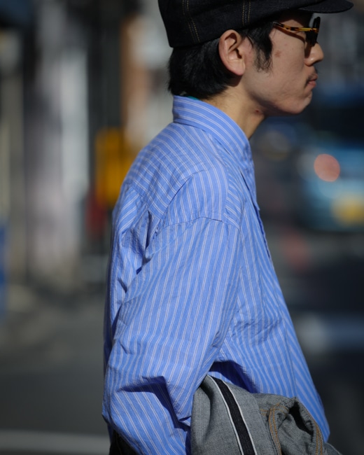 model = 3 Button Regular Collar Shirt [Blue st.]