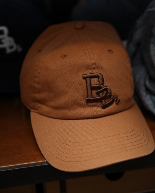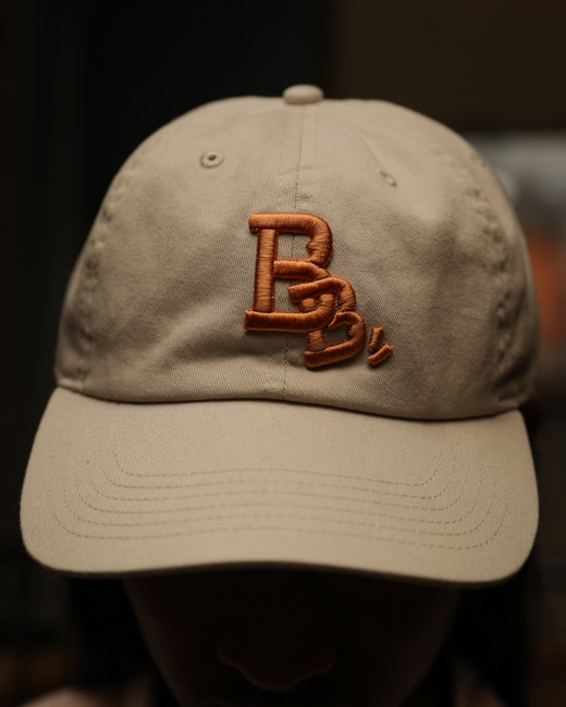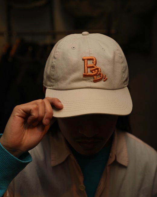 フロントに、ブランドの頭文字「BB」、サイドにルーラブーラ柄の刺繍を施したBBキャップとなります。