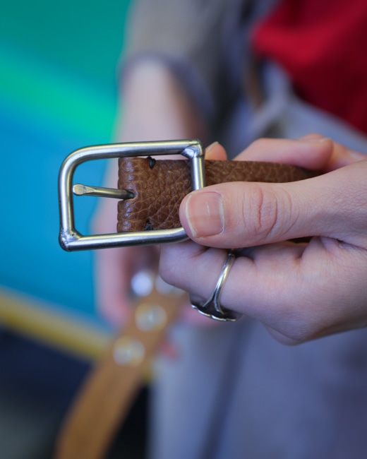 バックルは堅牢でマットな質感が美しいステンレス鋼、曲げ加工や溶接をハンドメイドで施したオリジナルパーツです。