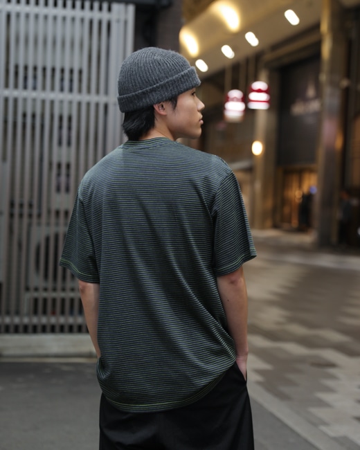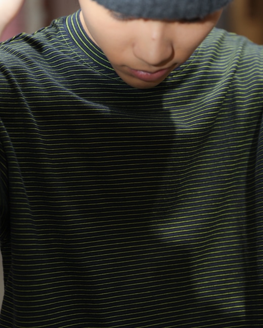 YONETOMI NEW BASICよりガーメントダイの細ピッチボーダーTが入荷しました。