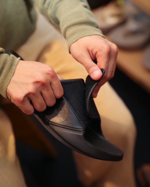 アッパー部分のベルクロにより、サイズもフレキシブルなコチラの一足。
