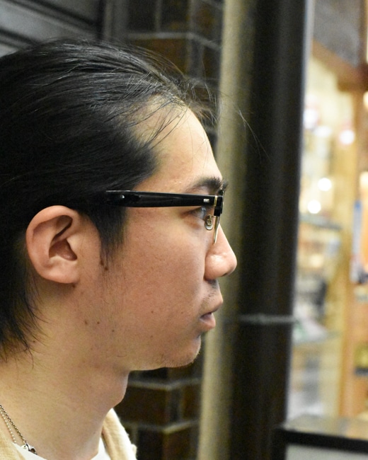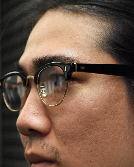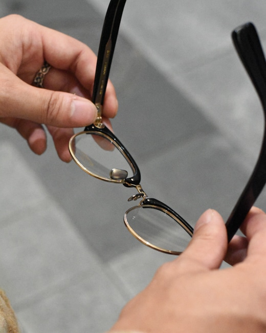 EYEVAN7285のアーカイブパーツであるダルマリムを用いてブリッジやテンプル芯には