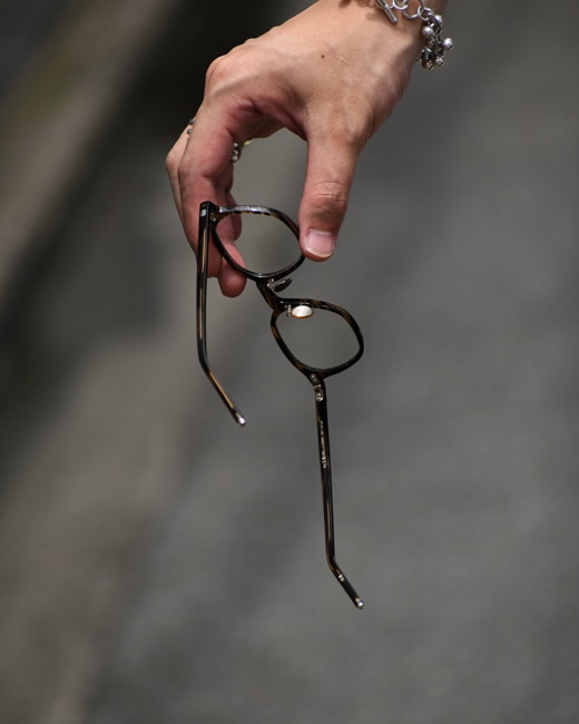 分銅をモチーフにデザインされたエンドチップに七色に輝く奈良県にて製造されたシェルのノーズパッド。