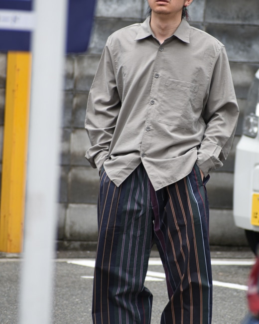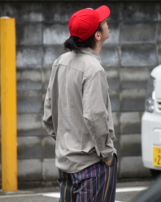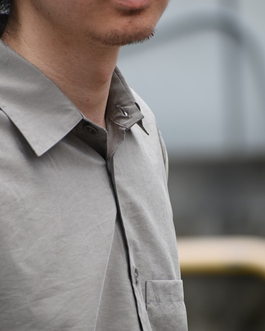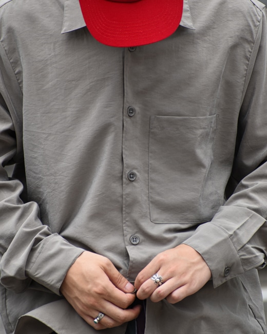 ゆとりのあるボックスシルエットにアーミーボタンを使用しワークシャツのようなルックスに仕上げております。