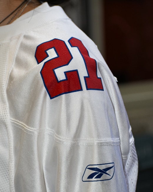 胸元のパネルを切り替えインシームポケットを配して両端のリベットで補強。