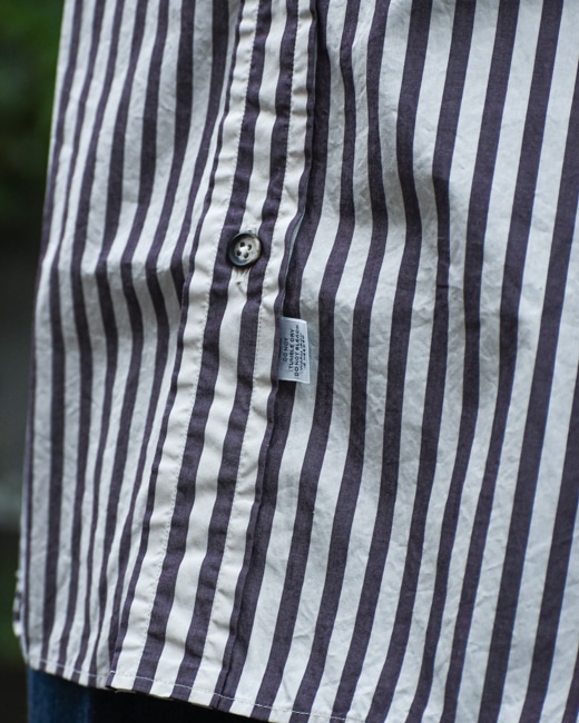 単なるノーカラーとは一線を画す首元はカットソーは勿論、シャツとのバランスも美しく収まります。