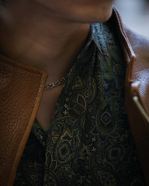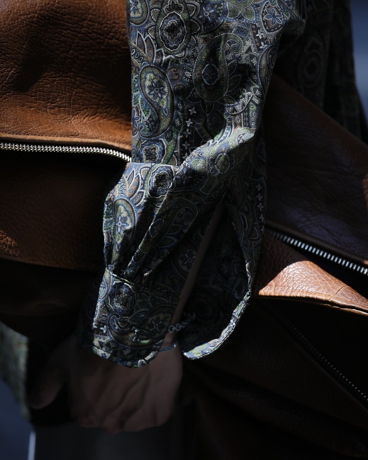 派手すぎない同系色のペイズリーが個性的、ブランドらしいスタイルが際立つ一着。