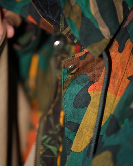 一枚仕立てのリバーシブル仕様で、デザインは1960年代のハンティングブルゾンから着想を得ています。