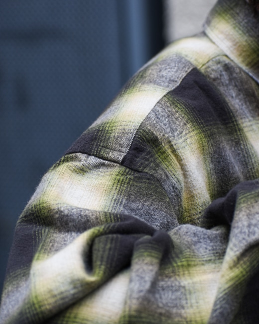 経糸に濃色インディゴコットン糸、緯糸には旧式力織機で紡績されたシルク100%のスペシャルな糸を